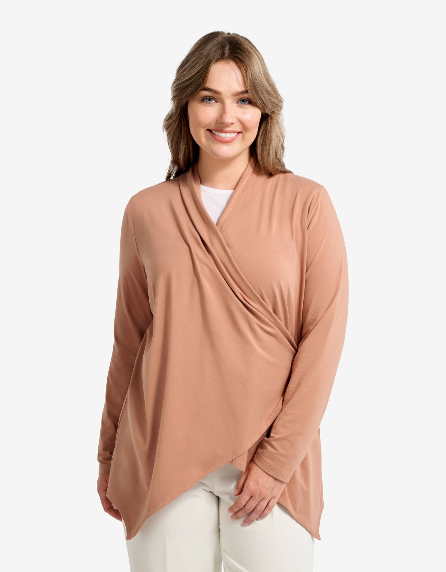 Stay stylish and protected with our UPF 50+ Luxe Sun Wrap. Designed for women with sensitive skin, it’s crafted from breathable cotton-bamboo and features elegant buttons, a ruched collar, and thumbholes for added coverage, so you can enjoy your day in the sun with confidence.